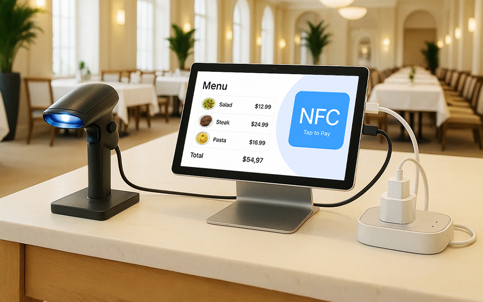The dual Type-C port design of the 10.1-inch NFC Tablets Android makes it well-suited for POS systems in retail and food service industries, supporting quick checkouts, inventory management, and customer interaction, while one port can be used for charging and the other for peripheral connections like printers or scanners, enhancing work efficiency.