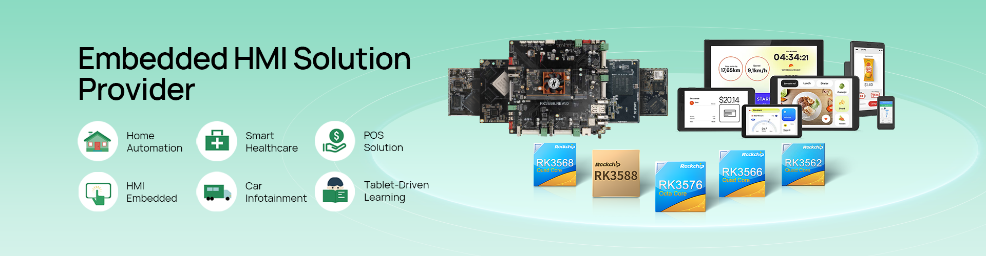 The RK3588S SBC with open frame touch screen and display solution is designed for POS payment terminals. Its high-performance CPU enables secure and efficient transaction processing, making it suitable for retail and service industries. The open frame design allows for easy customization and integration into existing payment systems.