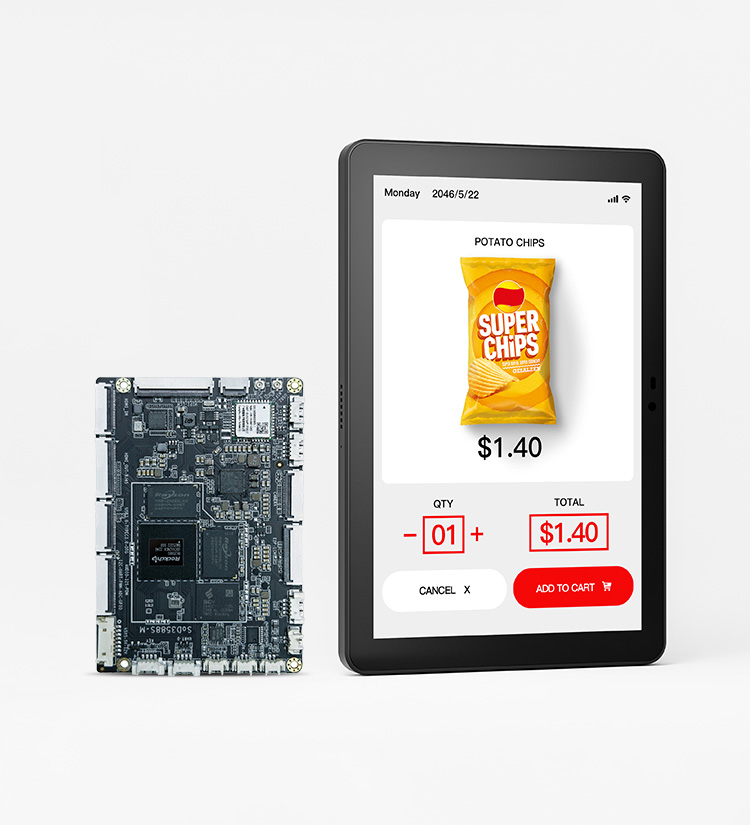 RK3576 SBC Open Frame HMI Kit with large screens (21.5-inch, 32-inch, 43-inch, 55-inch, 65-inch) , suitable for applications in smart security, transportation, industrial automation, healthcare, education, and retail sectors.