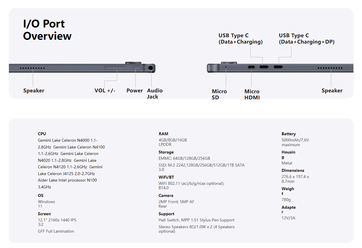 Provides an array of rich connectivity ports including dual Type-C, HDMI, and Micro SD.