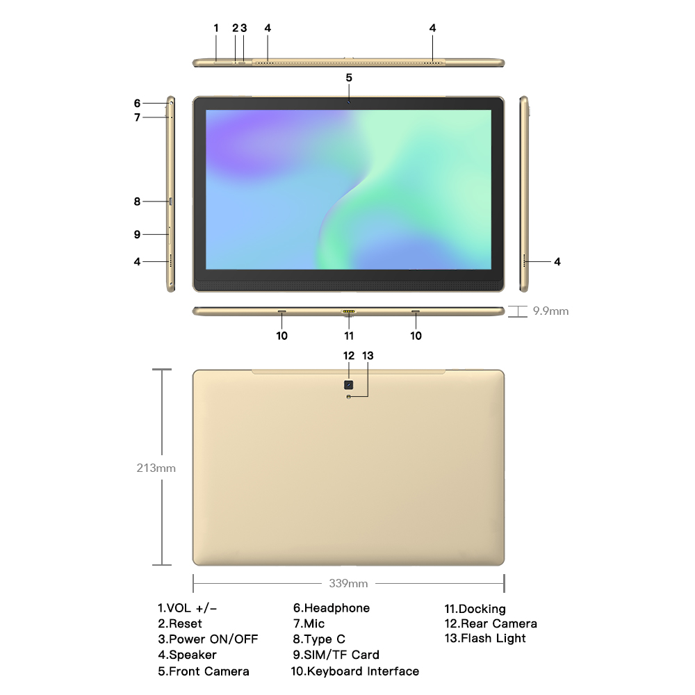 Ultra slim Metal housing, 9.9mm thickness, and light weight 894g